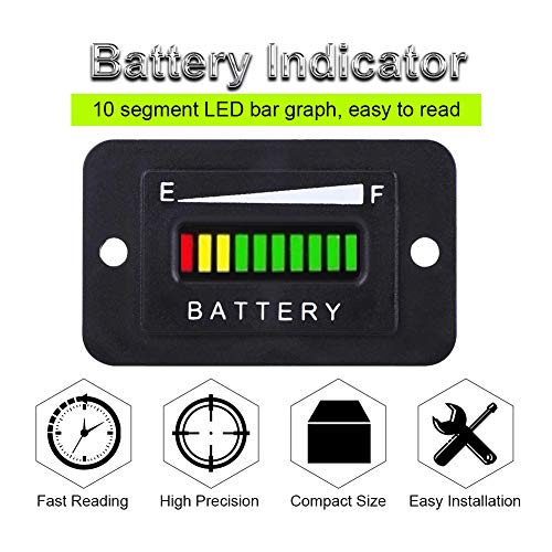 Indicatore LED: Il nostro indicatore della batteria è dotato di un display LED di alta qualità e chiaro. Visualizzazione del grafico a barre a 10 segmenti a LED. Alta affidabilità, viene fornito con una serie di accessori facili da installare e utilizzare
