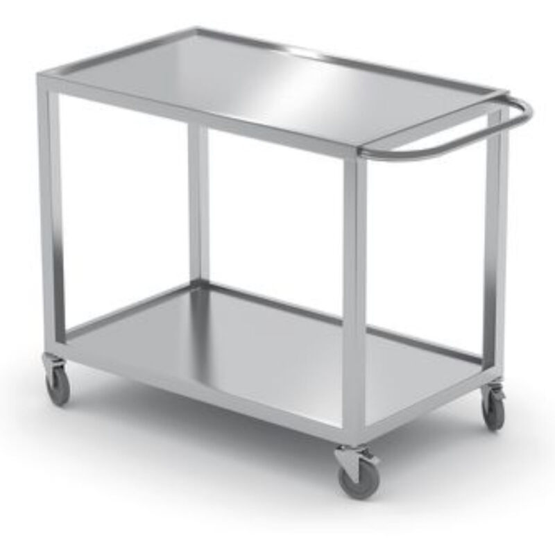 Codice produttore: 816691 Il carrello da cameriere saldato è perfetto per il trasporto di piatti pronti in strutture di ristorazione grandi e piccole, società di catering, scuole, ospedali e case per matrimoni. Il carrello è realizzato in acciaio inox AISI 430 La struttura saldata garantisce maggiore durata e stabilità. Caratteristiche del prodotto: - 2 ripiani con goffratura H = 10 mm proteggono le stoviglie dalla caduta, - dimensioni totali del ripiano: 700x500 mm, - dimensioni del ripiano senza goffratura: 650x450 mm, - distanza tra i ripiani: ca. 600 mm, - carico massimo uniforme sui ripiani: 50kg, - Maniglia orizzontale in acciaio inox sporgente 100 mm, - 4 ruote piroettanti diametro 100 mm con paraurti di cui 2 con freno. Parametri tecnici: - Numero di catalogo - 816691 - Condizione - Nuovo - Dimensioni - 800x500x(H)850 mm Incluso: - Carrello cameriere