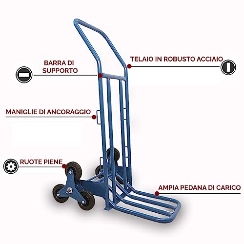 ✅E' munito di ben 6 ruote con la “configurazione a stella” per il trasporto su e giù per le scale. Può essere utilizzato per trainare oggetti sovradimensionati ed impilati in totale sicurezza sopratutto grazie alle 4 maniglie presenti sulla struttura che permettono un ancoraggio del carico con funi o cinghie