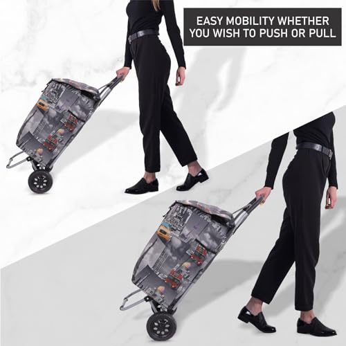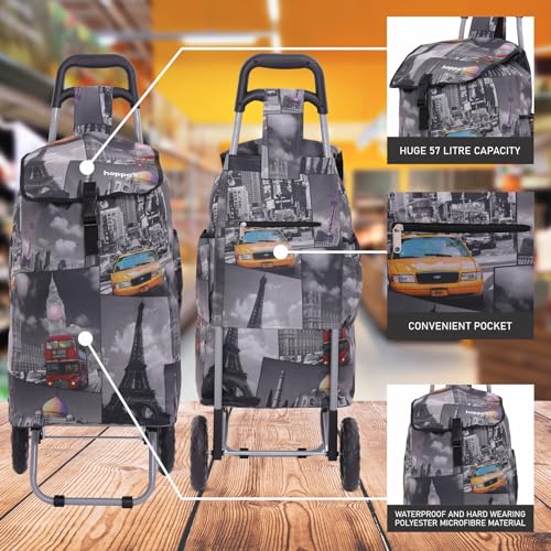 Carrello spesa leggero Hoppa da 57 litri, modello 2024, carrello push/pull resistente e pieghevole per riporlo facilmente con 1 anno di garanzia (città)