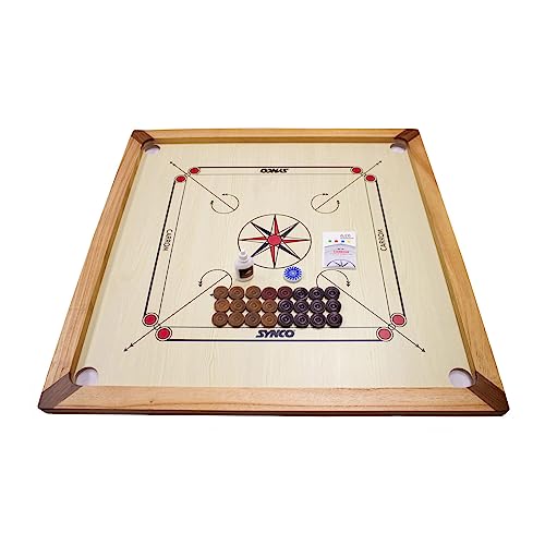 CARROM: con la nostra scheda Carrom Board Excellence Pro è il nome programma. Lavorazione solida e di alta qualità caratterizzano il nostro gioco. Dimensioni: 84 x 84, telaio in legno massiccio e superficie di gioco MDF da 13 mm per uno scorrimento ottimale delle pedine.
