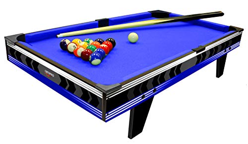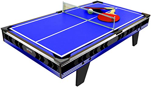 Viene fornito completo di due stecche da biliardo, palle da biliardo, 2 dischi da hockey e pusher, mazze da ping pong, palline.