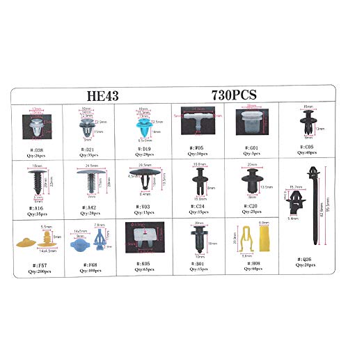 √√[17 taglie]1 scatola (730 pezzi) tappi assortiti per montaggio a incasso per auto, include 17 dimensioni diverse per soddisfare le tue esigenze per fermi carrozzeria adatto per fermi carrozzeria