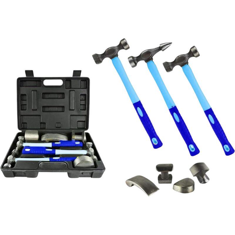 Kit Carrozziere Martelli Tassi Riparazione Auto Valigetta 7 Pezzi Utile kit per piccole riparazioni della vostra carrozzeria, manico sagomato in legno e impugnatura ergonomica per una maggiore comodità, kit composto da 3 martelli per battere e 4 tassi. Caratteristiche tecniche: 1 Martello a testa quadra e penna a punta 1 Martello a testa tonda piana e penna a punta arrotondata 1 Martello a testa tonda piana e quadra 1 Tasso a tallone 1 Tasso a virgola 1 Tasso a rotaia 1 Tasso ad incudine Impugnatura ergonomica Comoda valigetta La confezione contiene: Nr. 7 Attrezzi carrozziere Nr. 1 Valigetta