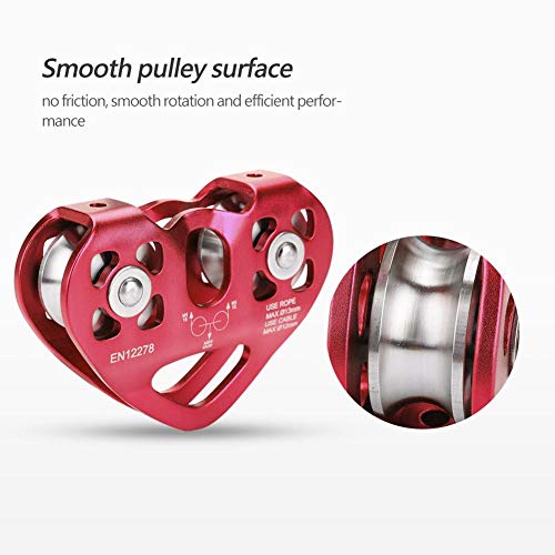 Carrucola per Arrampicata 30KN Puleggia per Arrampicata su Roccia a Doppio ASSE Puleggia Carrello per Cavi Carrucola in Tandem a Forma di Cuore(Rosso) Attrezzi da Arrampicata