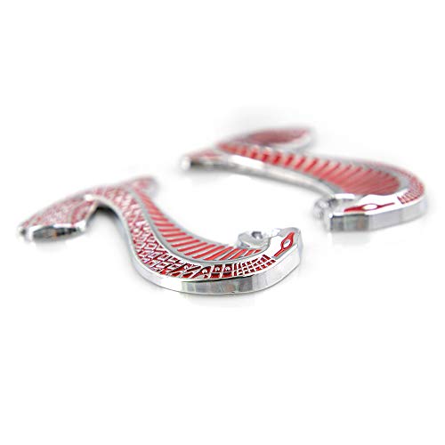 Carrun, 2 adesivi per parafango 3D Cobra Snake Emblema Fender Emblema Shelby per auto Mustang GT500 (rosso con profilo argento)