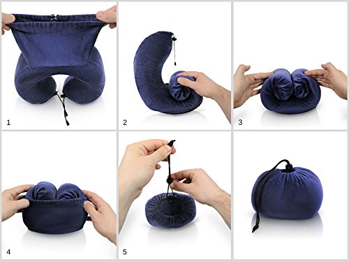 Trip Carry cuscino da viaggio (pieghevole) - Sagomato Cuscino con imbottitura in schiuma memory & Lavabile - Cuscino cervicale per Dormire in aereo, treno & Auto Blau