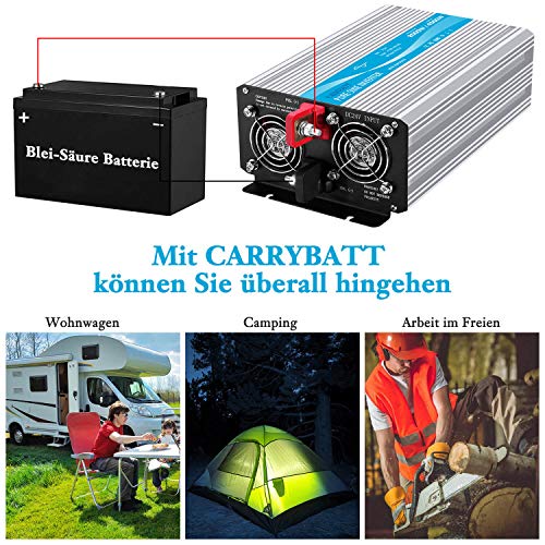 【CARRYBATT INVERTER AD ONDA SINUSOIDALE PURA】 CARRYBATT Power Inverter a onda sinusoidale pura ha due prese di uscita AC 220v e un caricatore presa usb 2,1A, che può essere collegato a qualsiasi elettrodomestico 220v, laptop o telefono cellulare.Fornisce 2000 watt continui, e ottiene 4000 watt di potenza di picco.