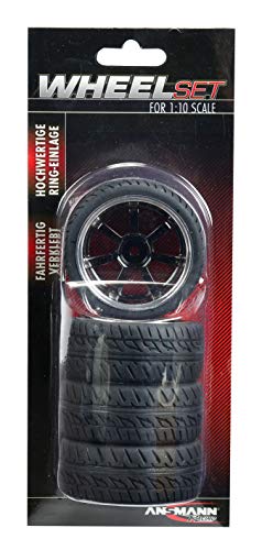 Carson 500900547 - Set di 4 Pneumatici W7, Colore: Nero, Scala 1:10