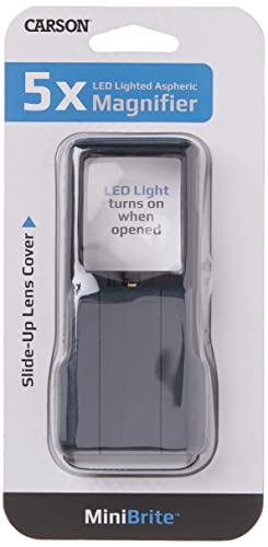 Carson MiniBrite 5x Lente d'ingrandimento tascabile con luce LED integrata e custodia scorrevole