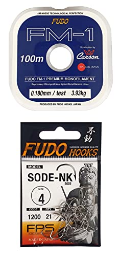 Carson - Kit con Filo da Pesca e Ami da Pesca Mare, Fiume e Lago per Grossi Predatori | Monofilo Fudo FM1 100 m Made in Japan Diametro Calibrato 0,30mm | Amo Fudo Chinu 1001 GUNSMOKE n. 2 - SET A