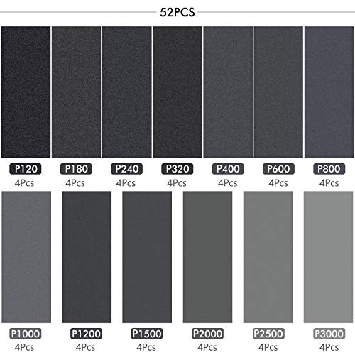 Carta Abrasiva, 52 Pz Carta Vetrata 120 180 240 320 400 600 800 1000 1200 1500 2000 2500 3000 in Grane Levigatura Secco e Umido Sandpaper per Mobili in Legno