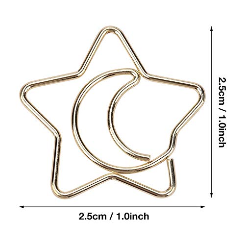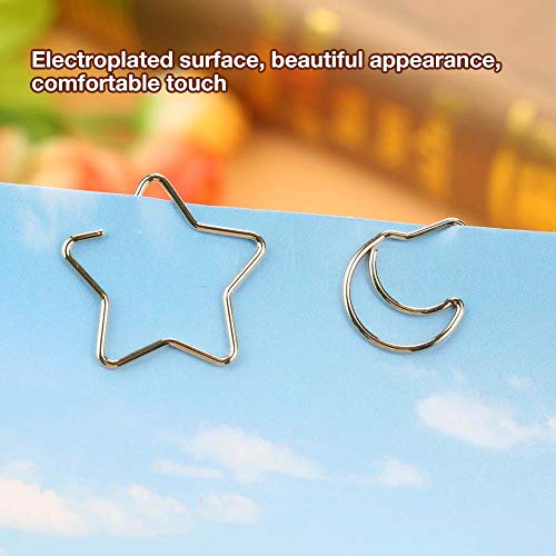 Clip di carta Alinory, 10 pezzi Clip placcate in plastica con placcatura a stella Luna Clip di carta Segnalibro divertente Clip per marcatura Oro