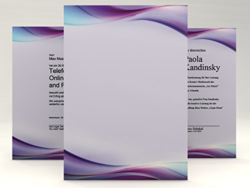 Carta certificata, colori velo Aqua, 100 fogli di formato A4, 190 g/mq - professionale certificati in un attimo. - Layout modelli in omaggio.