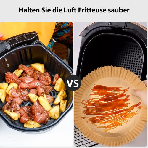 【Facile da pulire】Il vassoio di pergamena monouso per friggitrice ad aria mantiene la friggitrice pulita come sempre, risparmiando tempo e fatica, prevenendo i residui di cibo e le macchie sulle pentole unte e prolungando la vita della friggitrice ad aria.