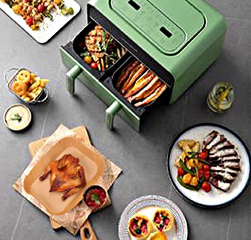 【Contenuto della confezione】: Contiene 100 fogli di carta da forno per friggitrice ad aria, la dimensione è 14 cm * 21 cm * 4,5 cm. Particolarmente adatto per friggitrici ad aria a doppia zona. Ottimo per cucinare tutti i giorni, campeggio, barbecue, feste estive e altro ancora. (Promemoria: per evitare di bruciare la contenitori per friggitrice ad aria, non metterla nella contenitori friggitrice ad aria durante il preriscaldamento)