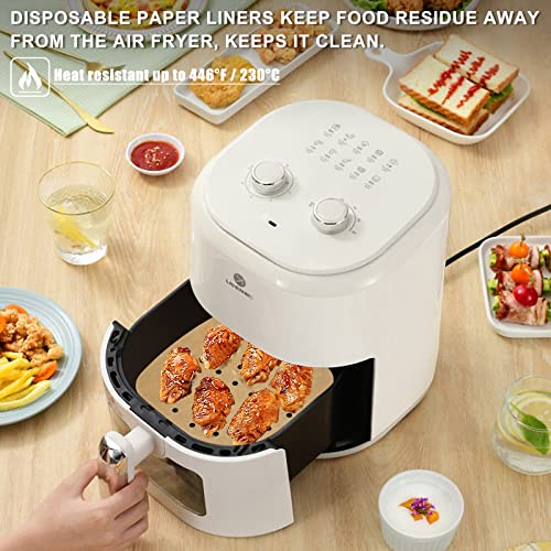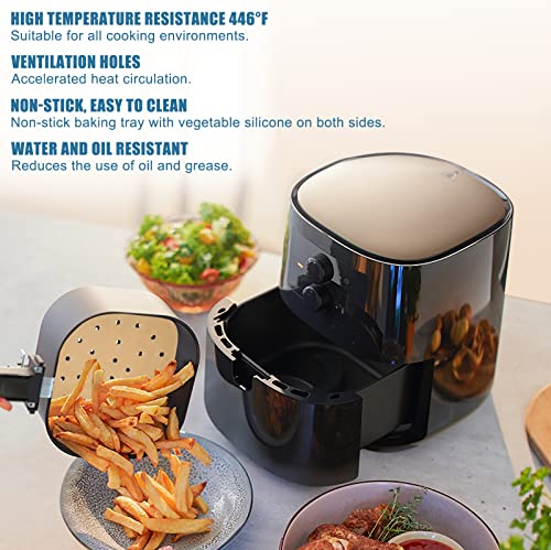 Dimensioni: 200 fogli di fodere monouso per friggitrice da 8,5 pollici/21 cm non sbiancate, sufficienti per uso domestico. Mantiene efficacemente i residui di cibo e rende la pulizia un gioco da ragazzi.