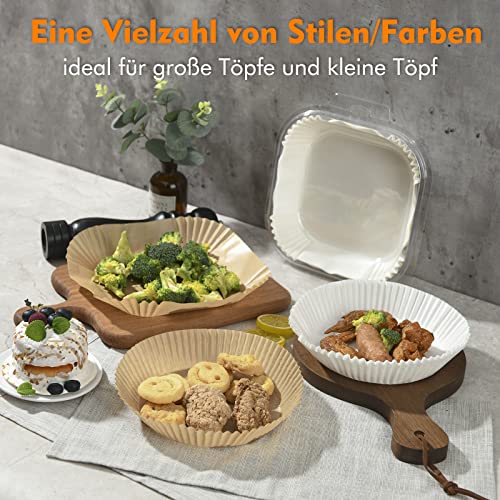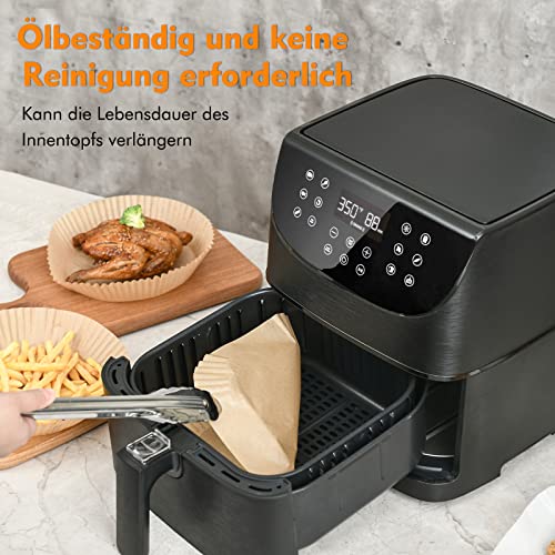 Carta da Forno per Friggitrice ad Aria, usa e Getta Carta Forno Friggitrice ad Aria, Antiaderente non Sbiancata Carta per Friggitrice ad Aria,Fodera di Carta Olio di Silicone