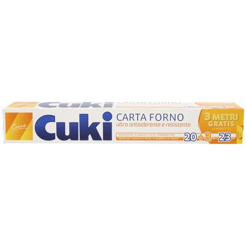 Cuki Carta Forno antiaderente ti permette di cucinare in maniera più sana senza l_aggiunta di condimenti e i tuoi cibi non si attaccano. -Ideale per cuocere in forno, in padella e al vapore -Resistente ai grassi e alle temperature -Ultra antiaderente e resistente -Lunghezza rotolo 23 metri