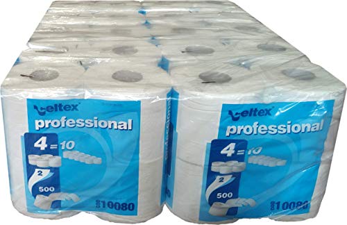 Carta Igienica 500 Strappi 2 Veli Pura Cellulosa 100% Bianca Professionale 40 Rotoli (40)