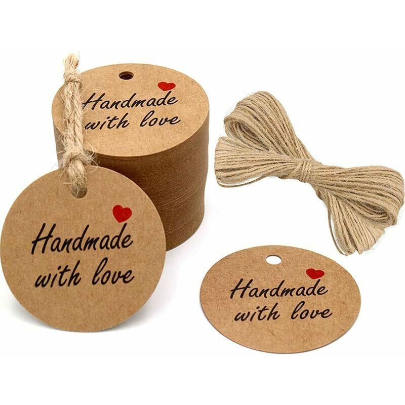 Le etichette sono belle e robuste, realizzate in cartone kraft marrone e sono dotate di cordino peloso per attaccarle a qualsiasi cosa tu stia etichettando La carta kraft può essere utilizzata come etichette, coriandoli, abbellimenti per album, decorazioni per cupcake, cartoline o qualsiasi altro progetto artigianale. La carta kraft può essere utilizzata con pennarelli/timbri o inchiostro, le etichette kraft assorbono bene l'inchiostro. Perfette per etichette di abbigliamento, cartellini dei prezzi, tag regalo, cartoline studentesche, tag segnalibro, toppers cupcake, toppers torta, auguri Dimensioni: 5 CM*5 CM. Materiale: le etichette per bomboniere sono realizzate in cartoncino 300 (GSM) di alta qualità. Descrizione del prodotto Marrone fatto a mano fatto a mano con etichette d'amore con stringa C'è il testo Handmade with love su ogni tag, il che significa che puoi usare queste etichette quando regali qualcosa che fai a mano. Viene fornito con un spago da legare;