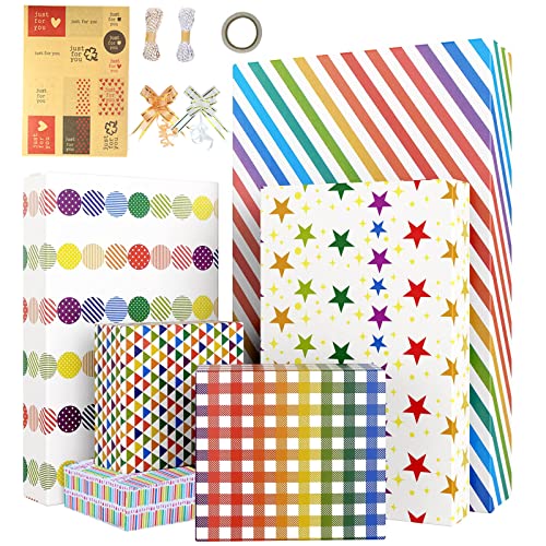 ✨Pacchetto di grande valore: Vieni con 6 fogli di carta regalo kraft a tema diverso da 70x50 cm, spago di iuta bonus da 20 metri e 3 etichette kraft per la maggior parte delle occasioni.