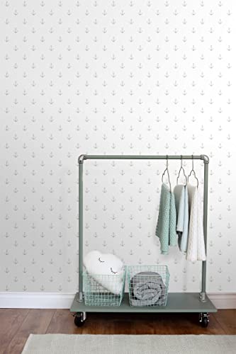 Carta da parati ancore bianco e argento - 138964 - di ESTAhome