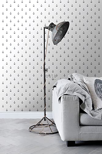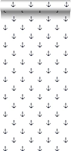 Carta da parati ancore bianco e blu scuro - 138965 - di ESTAhome
