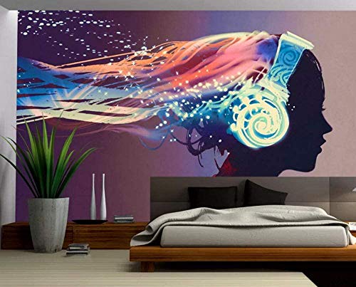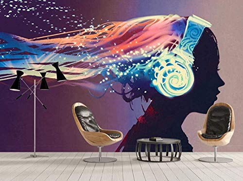 Carta Da Parati Camera Da Letto Ragazza Con Le Cuffie Che Ascoltano La Musica Carta Da Parati 3D Moderna Fotomurali Wallpaper