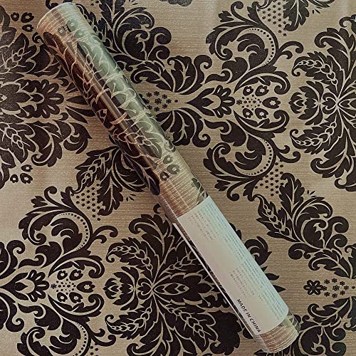 Carta da parati damascata autoadesiva, per rivestire mensole, per cucina, cassetti, armadi, ripiani, piani di lavoro, adesivo per pareti, 45 cm x 10 m (Nero)