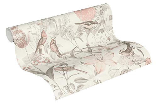 Carta Da Parati Floreale Exotic Life Carta da parati tessuto non tessuto 10.05 m x 0.53 m Grigio Rosa Arancione Prodotto in Germania da A.S. Création 372762 37276-2