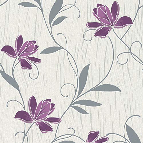 Carta da parati floreale fiori liberty camera da letto Argento Lilla/Violetto Bianco 306234 30623-4 Livingwalls Styleguide Jung | Argento/Lilla/Violetto/Bianco | Rotolo (10,05 x 0,53 m) = 5,33 m²