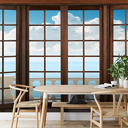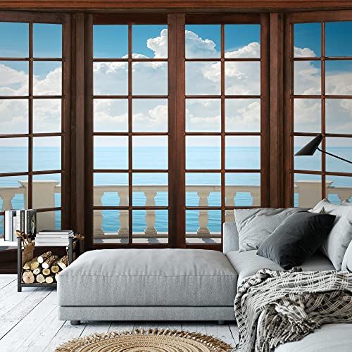 Runa Art Carta da parati fotografica 396 x 280 cm Finestra sul mare | Vello Decorazione Murale Soggiorno Camera Da Letto | Manifattura tedesca | blu marrone 9363012b