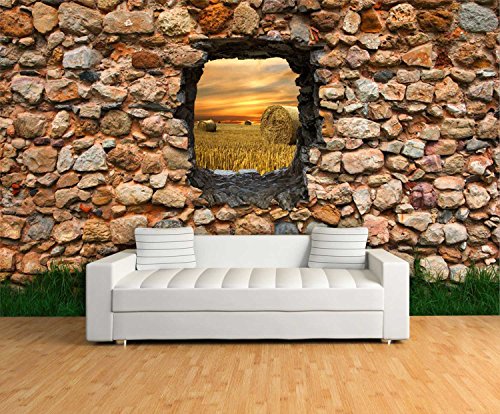 Carta da parati fotografica in tessuto non tessuto, effetto 3D, palline di paglia al tramonto