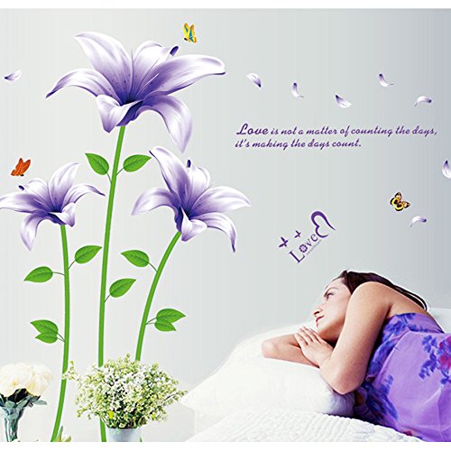 Carta da Parati Gigli Viole Farfalle Parole Inglesi Sticker Decorazione Rimovibile di Casa Soggiorno Camera da Letto Sala da Pranzo Arte Immagine Fai da Te per Ragazzi Bambini Infanzia