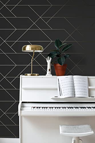 Questa carta da parati accattivante con linee grafiche in nero e oro è perfetta per creare un muro di istruzioni unico e aggiunge un'atmosfera calda e vivace alla stanza.