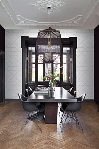Questa carta da parati accattivante con linee grafiche in bianco e nero è perfetta per creare un muro di istruzioni unico e aggiunge un'atmosfera calda e vivace alla stanza.