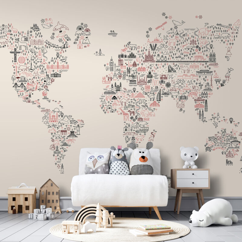 Carta da parati fotografica: un elemento decorativo perfetto Le carte da parati fotografiche stanno diventando sempre più popolari e rimarranno sicuramente a lungo parte delle attuali tendenze dell'interior design. Ciò è dovuto, tra gli altri, per il fatto che danno effetti spettacolari e la loro installazione non è un grosso problema. La carta da parati fotografica "Carta da parati fotografica - Mappa di icone - rappresentazione del mondo in colori pastello" ti permette di cambiare completamente l'attuale disposizione senza la necessità di effettuare grandi lavori di ristrutturazione. Basta scegliere il modello giusto per creare un interno suggestivo ed elegante. I nostri sfondi fotografici su misura sono la scelta giusta per chiunque sogni una trasformazione della casa. Con il loro aiuto potrete rinfrescare senza troppi sforzi qualsiasi stanza, come ad esempio una camera da letto, un soggiorno, una cameretta o una sala da pranzo. I murali sono estremamente facili da installare.