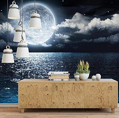 Carta da parati murale impermeabile 3D Cielo stellato Luna Mare Notte Vista Pittura murale Bagno Soggiorno Adesivi murali-430 * 300 cm