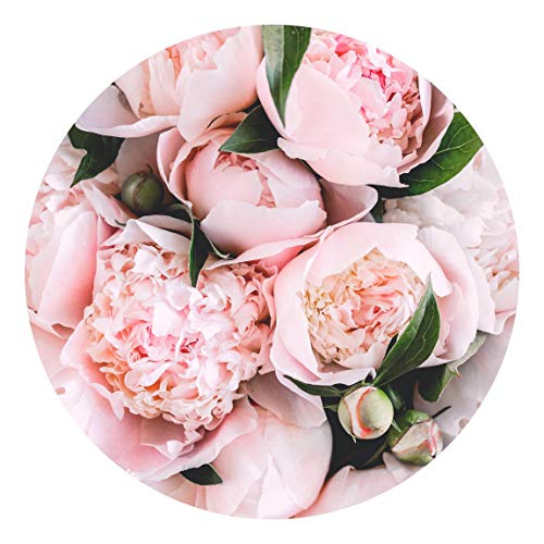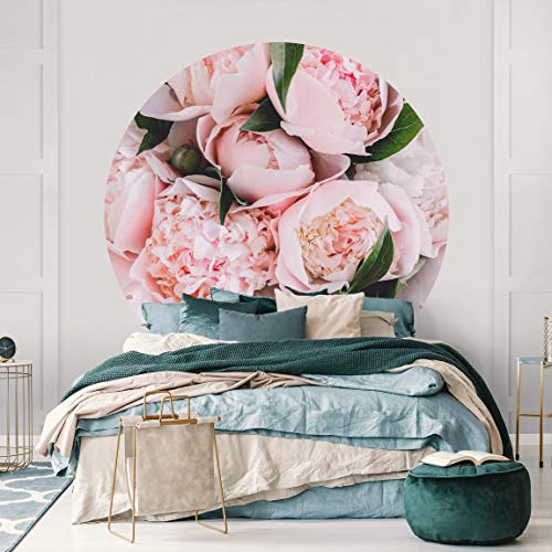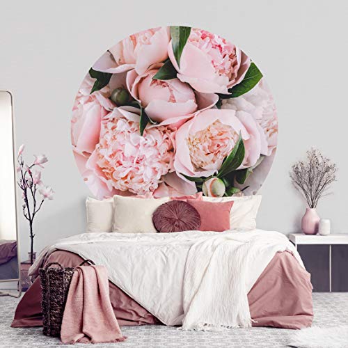 Carta da parati rotonda autoadesiva - Peonie rosa con foglie 50 × 50 cm