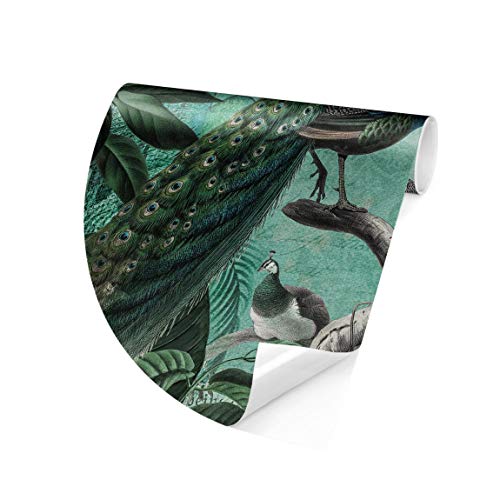 Carta da parati rotonda autoadesiva Shabby Chic Collage Noble Peacock 75x75cm