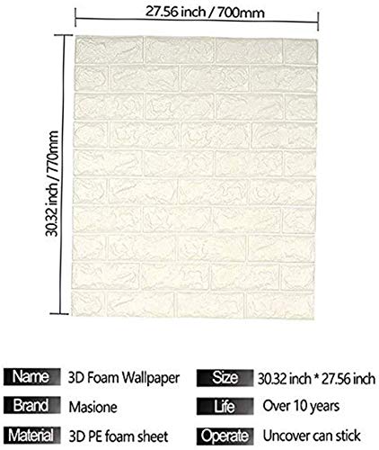 Carta da Parati 3D Sticker Wallpaper per TV Pareti Divano Sfondo Carta da Parati Autoadesiva 70x77cm DIY Adesivi muro di mattoni imitazione PE Schiuma 3D Impermeabile Pannelli in Mattoni,Bianco