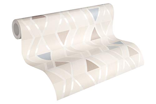 Carta da parati tnt (tessuto non tessuto) anni 70 damascata Beige Azurro Marrone 343025 34302-5 A.S. Création Happy Spring | Beige/Azurro/Marrone | Rotolo (10,05 x 0,53 m) = 5,33 m²