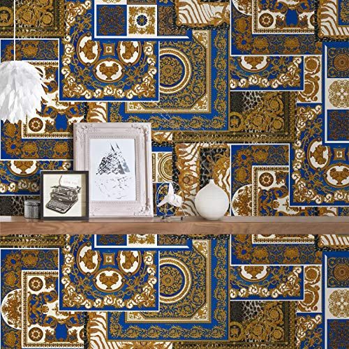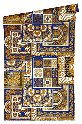 Carta da parati tnt (tessuto non tessuto) effetto cemento Azurro Argento Bianco 370481 37048-1 Versace Versace 4 | Azurro/Argento/Bianco | Rotolo (10,05 x 0,70 m) = 7,04 m²
