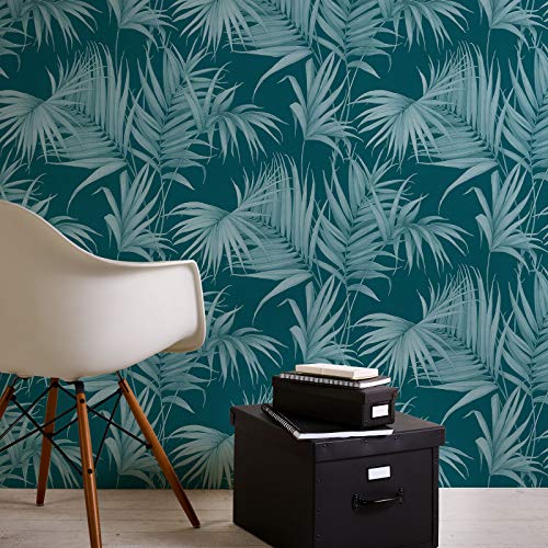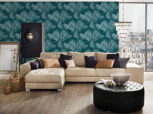 Carta da parati tnt (tessuto non tessuto) tropicale giungla jungle Azurro Verde 365055 36505-5 Michalsky Living Dream Again | Azurro/Verde | Rotolo (10,05 x 0,53 m) = 5,33 m²