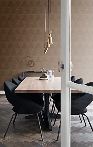 Con questa carta da parati con triangoli di metallo alterati e invecchiati dalle intemperie in marrone ruggine dai alle pareti un aspetto robusto e crea un interno con atmosfera e carattere. I sottili effetti di lucentezza arricchiscono il design e conferiscono alla carta da parati un aspetto elegante e lussuoso.