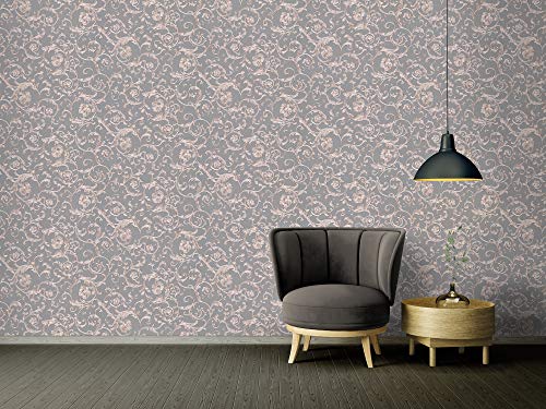Carta da parati Versace Carta Da Parati Damasco Carta da parati tessuto non tessuto 10.05 m x 0.70 m Bronzo Grigio Viola Made in Germany 343265 34326-5