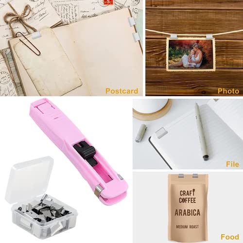 Clip di carta, 2 pezzi, mini cucitrice push con 100 pezzi, per ufficio, studenti, graffette riutilizzabili, per ufficio e scuola
