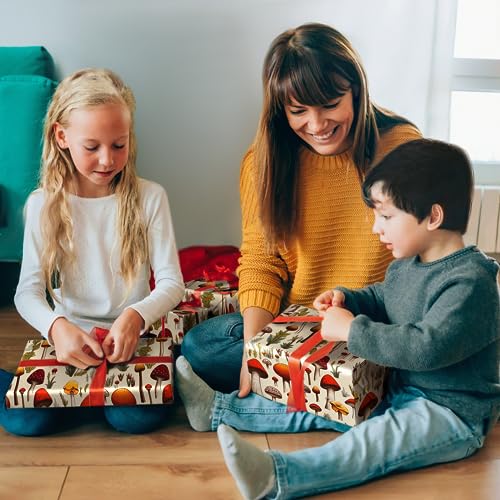 Carta da regalo con funghi - 6 fogli di carta da regalo color crema per donna - Rosso Giallo - Per compleanno, anniversario, Natale - Riciclabile - Di Central 23