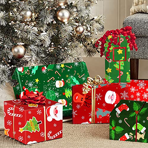 Carta da Regalo Natalizia Set, 9 Carta Regali Natale, 70 x 50cm Carta Pacchi Natale, Carta Regalo Natalizia per Bambini, Fiocco di neve, Renna, Rosso Verde